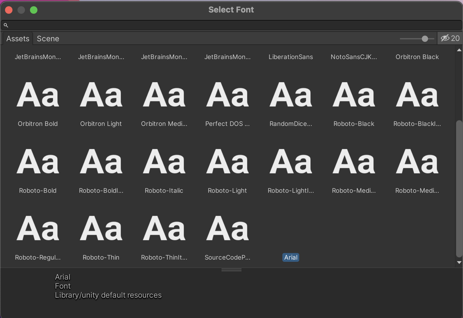 유니티에서 기본으로 제공하는 Arial 폰트를 사용하면 추가로 폰트 데이터가 앱에 추가 되지 않는다.